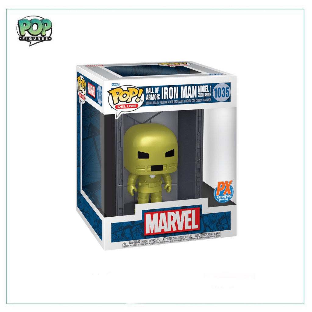 Iron Man Model 1 Golden Armor (Metallic) #1035 Deluxe Funko Pop! - Marvel - Hall Of Armor - PX Previews Exclusive